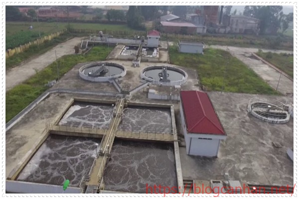 - Nước thải – Ngăn lắng cát – Hố Biogas – Hố lắng – Bể Aerotank – Bể lắng bùn – Hố ổn định – Tuần hoàn để tưới cây.